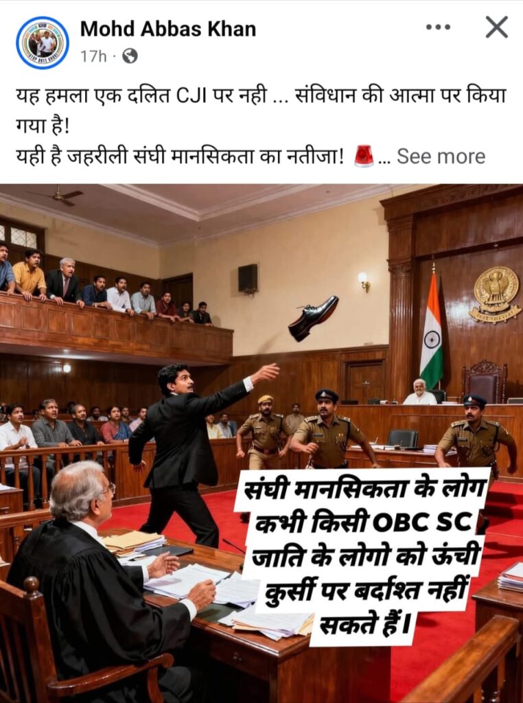 यह घटना भारत की न्याय व्यवस्था की कमजोरियों को उजागर करती है, जहां जाति, धर्म और राजनीति न्याय के रास्ते में बाधा बन रही हैं। वकीलों में जो एकता है, वही जजों को भी दिखानी चाहिए। सुप्रीम कोर्ट को FIR दर्ज करने और सुरक्षा मजबूत करने का आदेश देना चाहिए, ताकि भविष्य में ऐसी घटनाएं न हों।